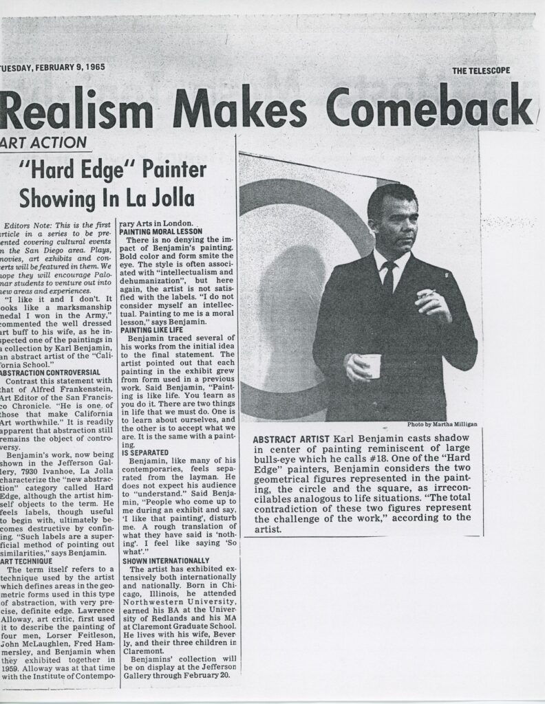 “'Hard Edge Painter' Showing in La Jolla.” The Telescope, 9 February 1965.