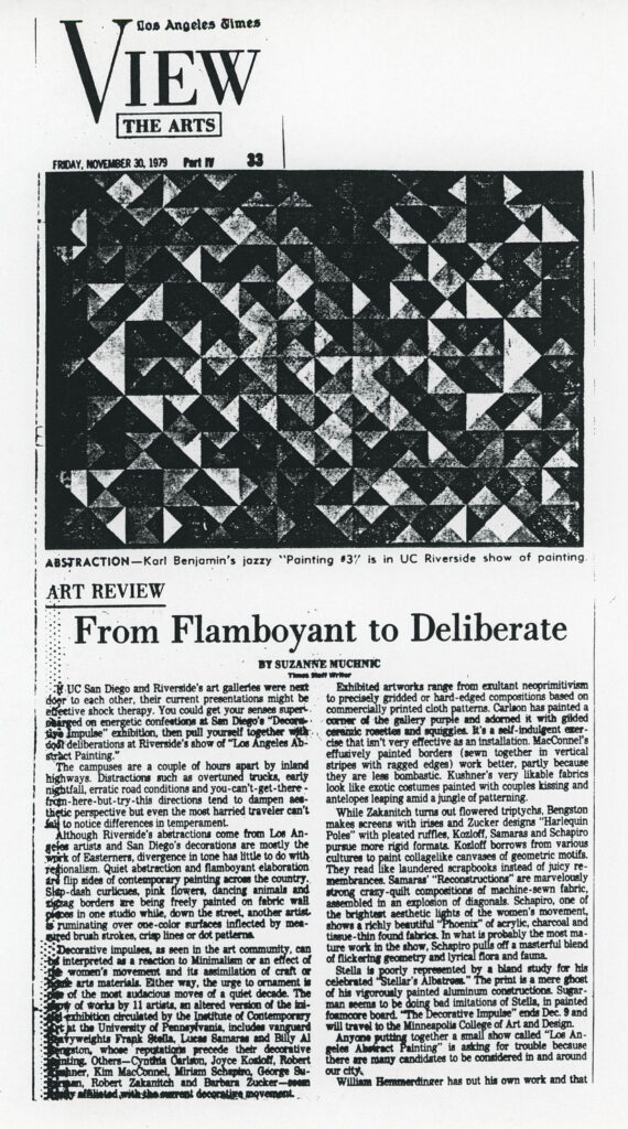 Muchnic, Suzanne. “From Flamboyant to Deliberate.” Los Angeles Times, 30 November 1979, sec. View, p. 33.