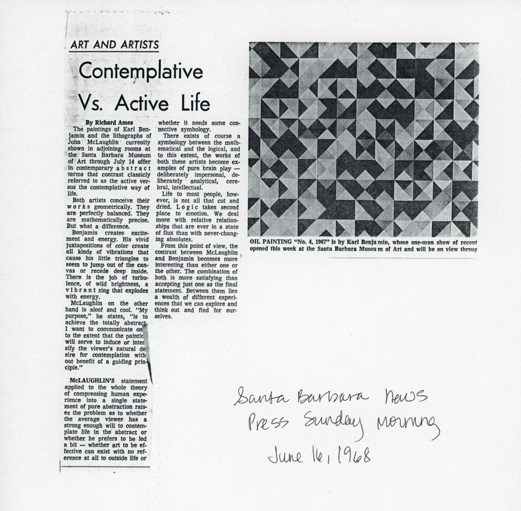 Ames, Richard. “Contemplative Vs. Active Life.” Santa Barbara News-Press, 16 June 1968.